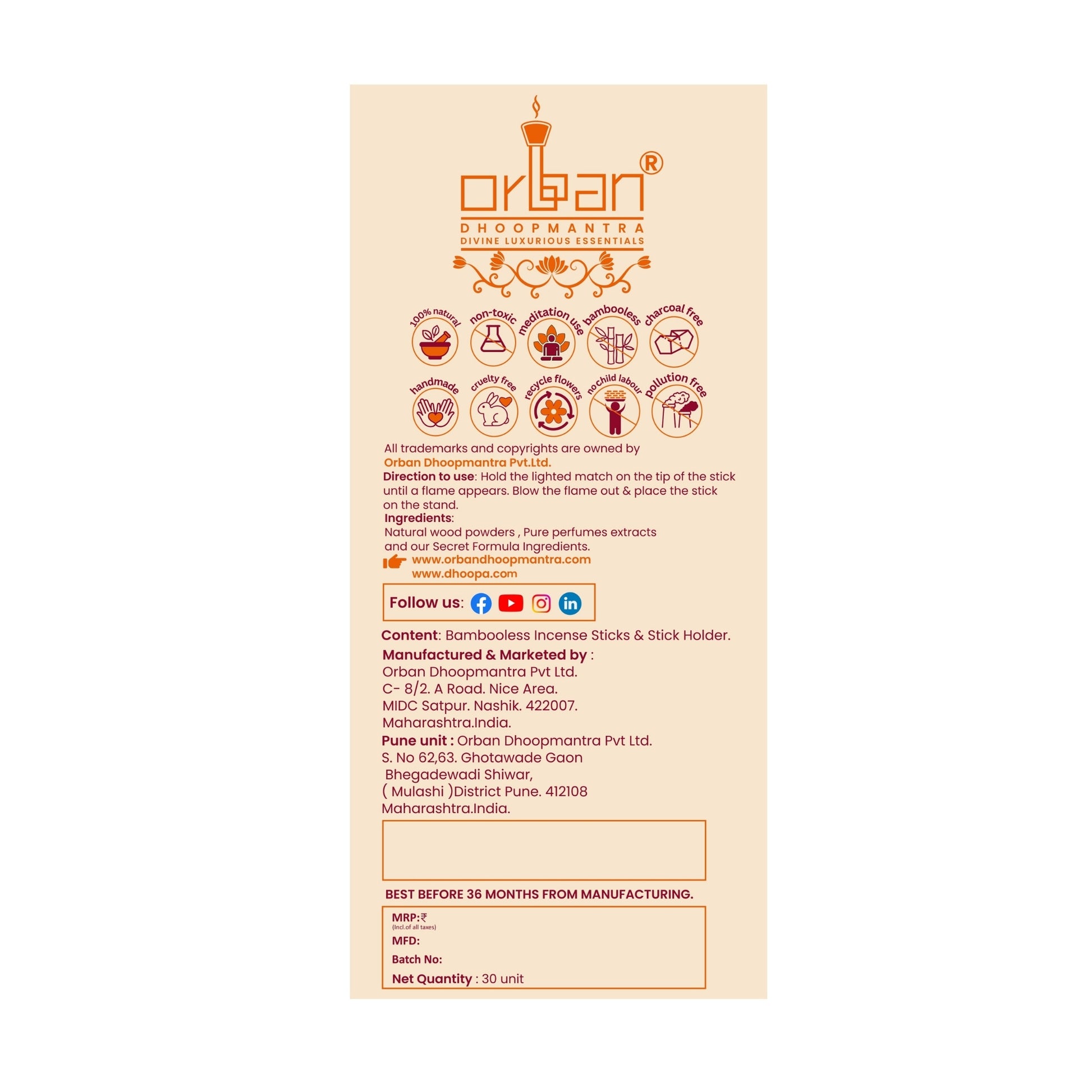 At Orban Dhoopmantra, we strive to deliver products in excellent condition and as quickly as possible.