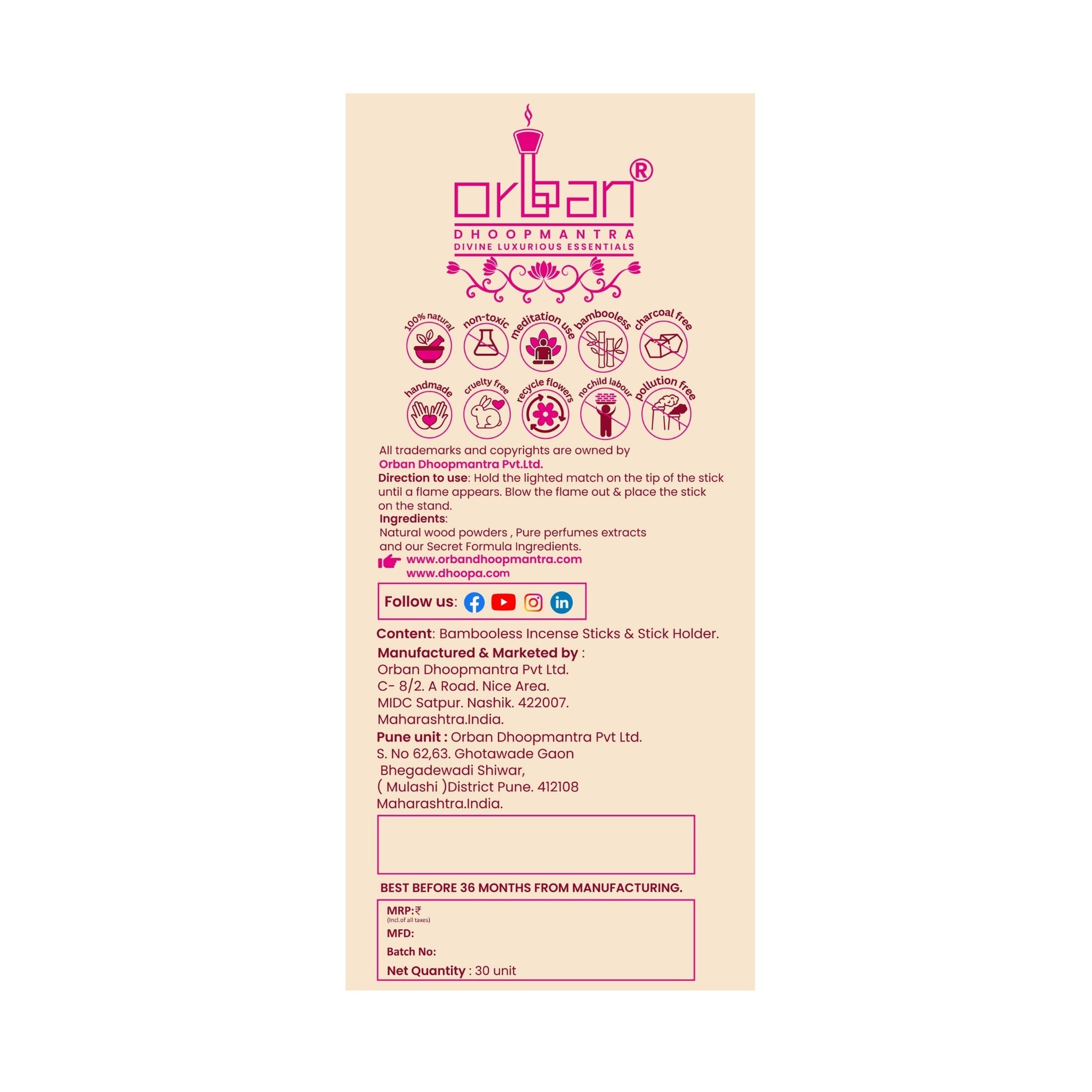 At Orban Dhoopmantra, we strive to deliver products in excellent condition and as quickly as possible.