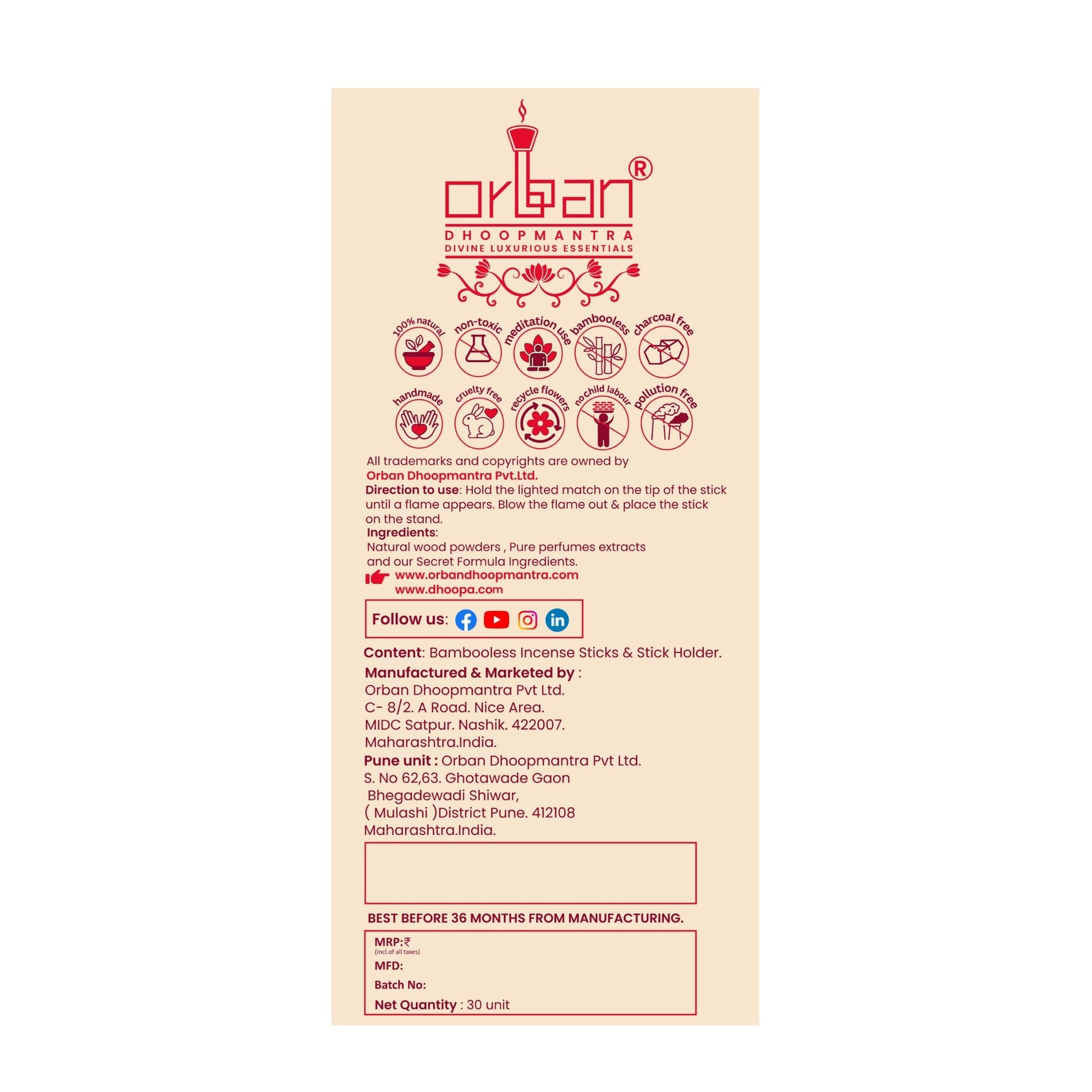 At Orban Dhoopmantra, we strive to deliver products in excellent condition and as quickly as possible.