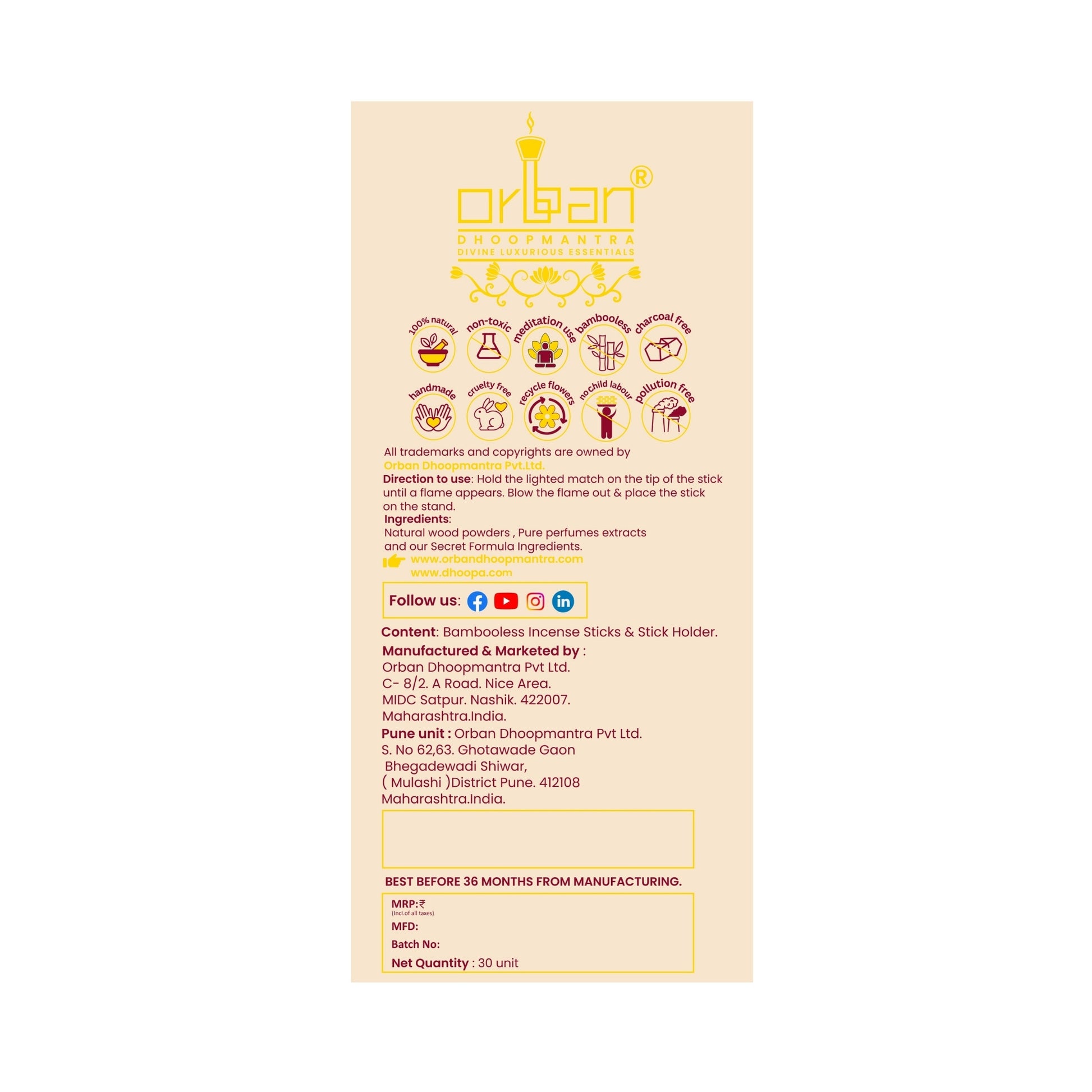 At Orban Dhoopmantra, we strive to deliver products in excellent condition and as quickly as possible.