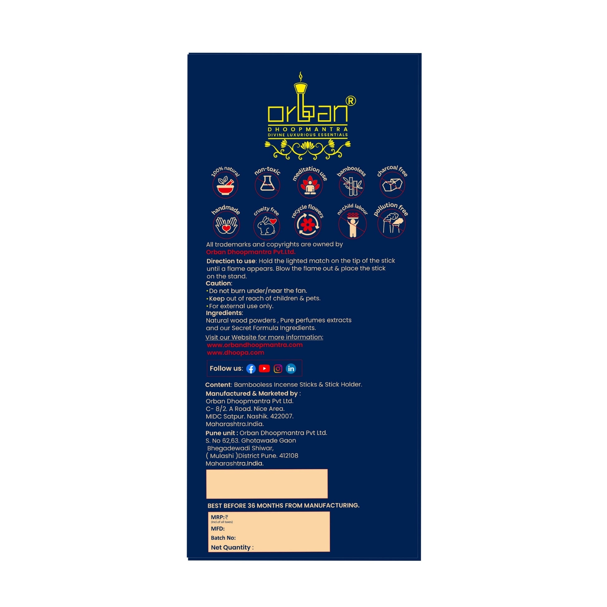 At Orban Dhoopmantra, we strive to deliver products in excellent condition and as quickly as possible.